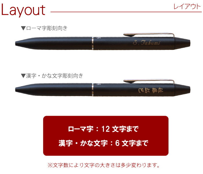 彫刻内容 ■文字数 ローマ字:12文字 漢字・かな文字:6文字 ※彫刻内容は 買い物かご→購入手続き→【備考欄】へ おすすめ♪