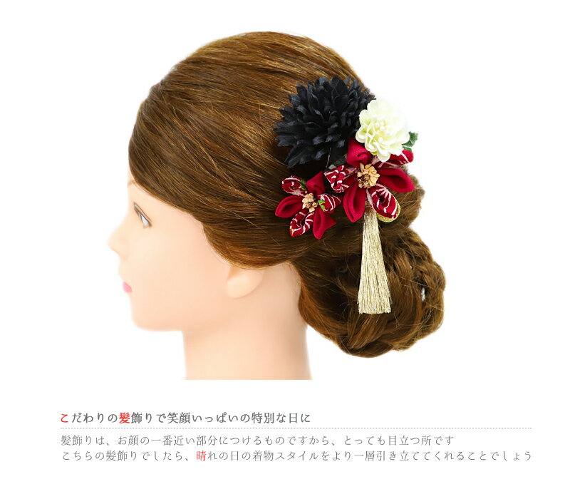 髪飾り 成人式 前撮り 振袖 袴 2点セット 花 赤 黒 白 オフホワイト 金 ちりめん つまみ細工 組紐 房 房付き 造花 麻の葉 和柄 かんざし 簪 和 和装 日本製 レトロ 古典 おしゃれ 小さい 可愛い 大人 大人可愛い 粋 ヘッドドレス ヘアアクセ 卒業式 結婚式 入園式 卒園式 謝恩会 七五三 浴衣 パーティー お祭り ハンドメイド 手作り No.9-4980 サイズ表 ≪房付き飾り≫ 縦 約13cm × 横 約8cm × 高さ 約5.5cm ≪つまみ細工≫ 縦 約4cm × 横 約4cm × 高さ 約3cm ※飾り部分のみ計測しています。